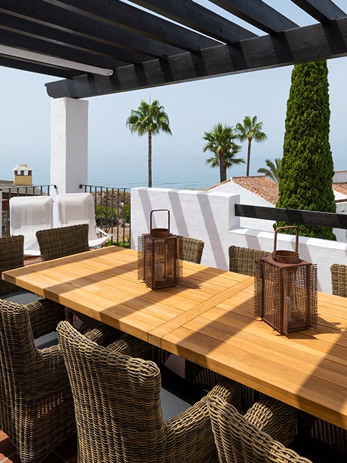 Boligens indretningsmæssige udtryk skal være i tråd med den klassiske andalusiske stil, den mere moderne og elegante sydspanske stil eller måske et mix af dem begge. Under alle omstændigheder skaber vi en samlet løsning i den stil og standard, der kendetegner en rigtig sydspansk 21-5 feriebolig.