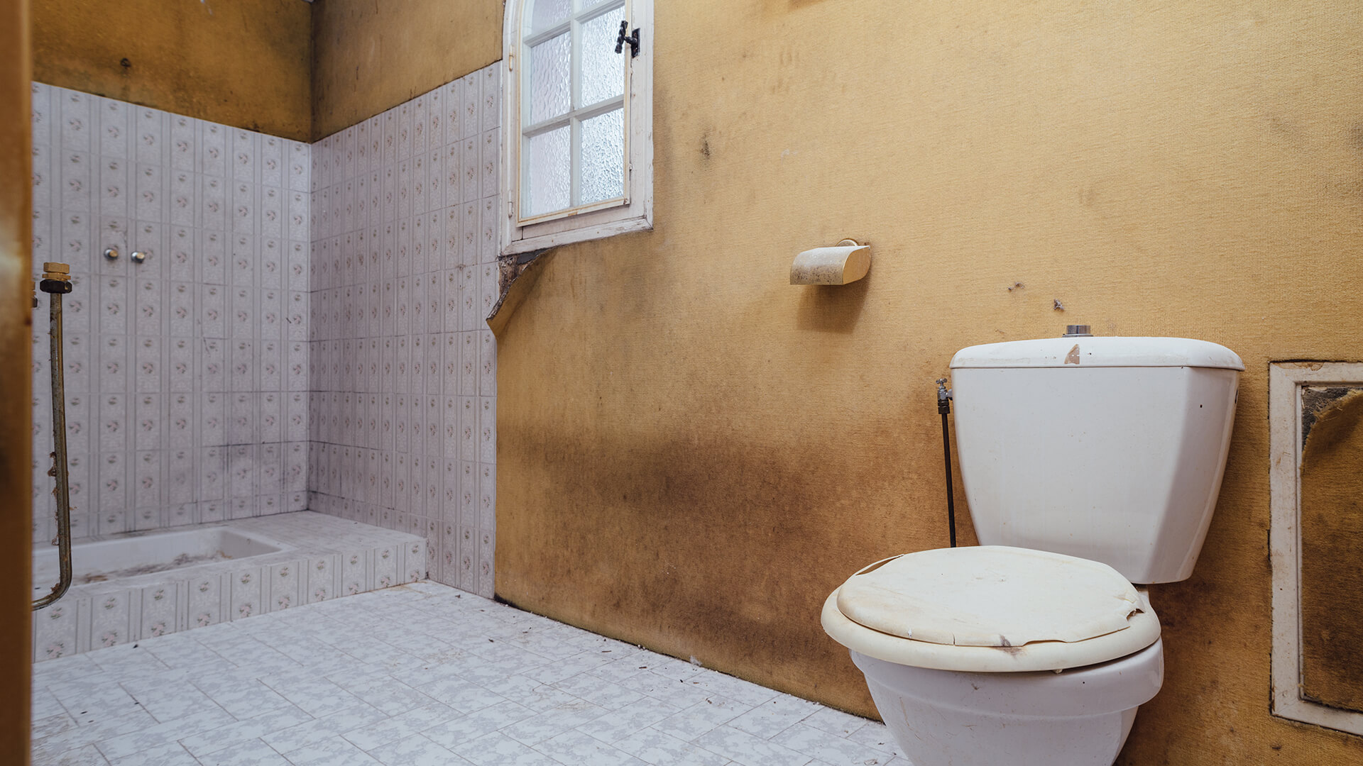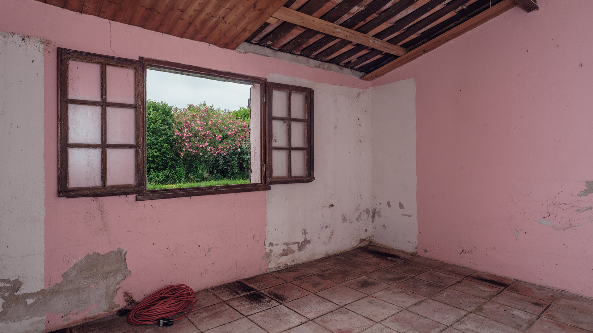 "Det lyserøde hus" som var meget meget træt. Nu er det friskt og lækkert og ofte booket.