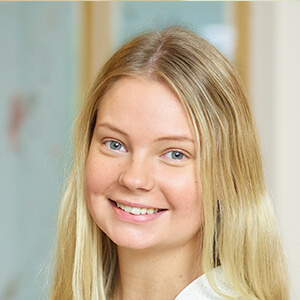 Caroline er student fra Lyngby Handelsgymnasium i 2019 og arbejdede et års tid som studentermedhjælper i smykkevirksomheden Carré, hvor hun håndterede diverse administrative opgaver samt var ansvarlig for logistikken.