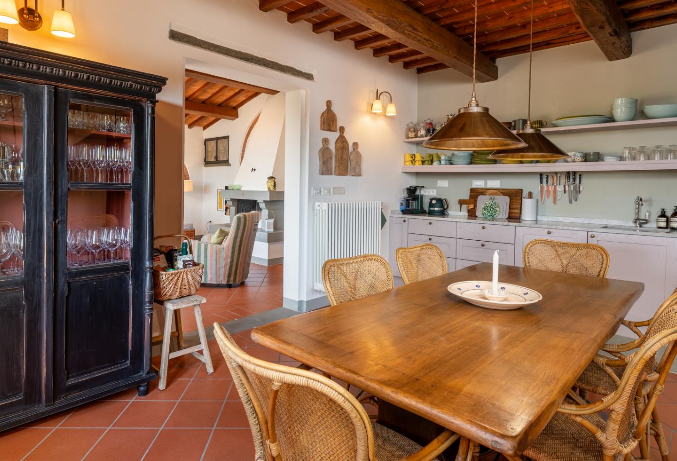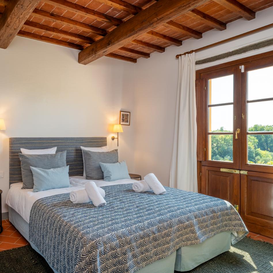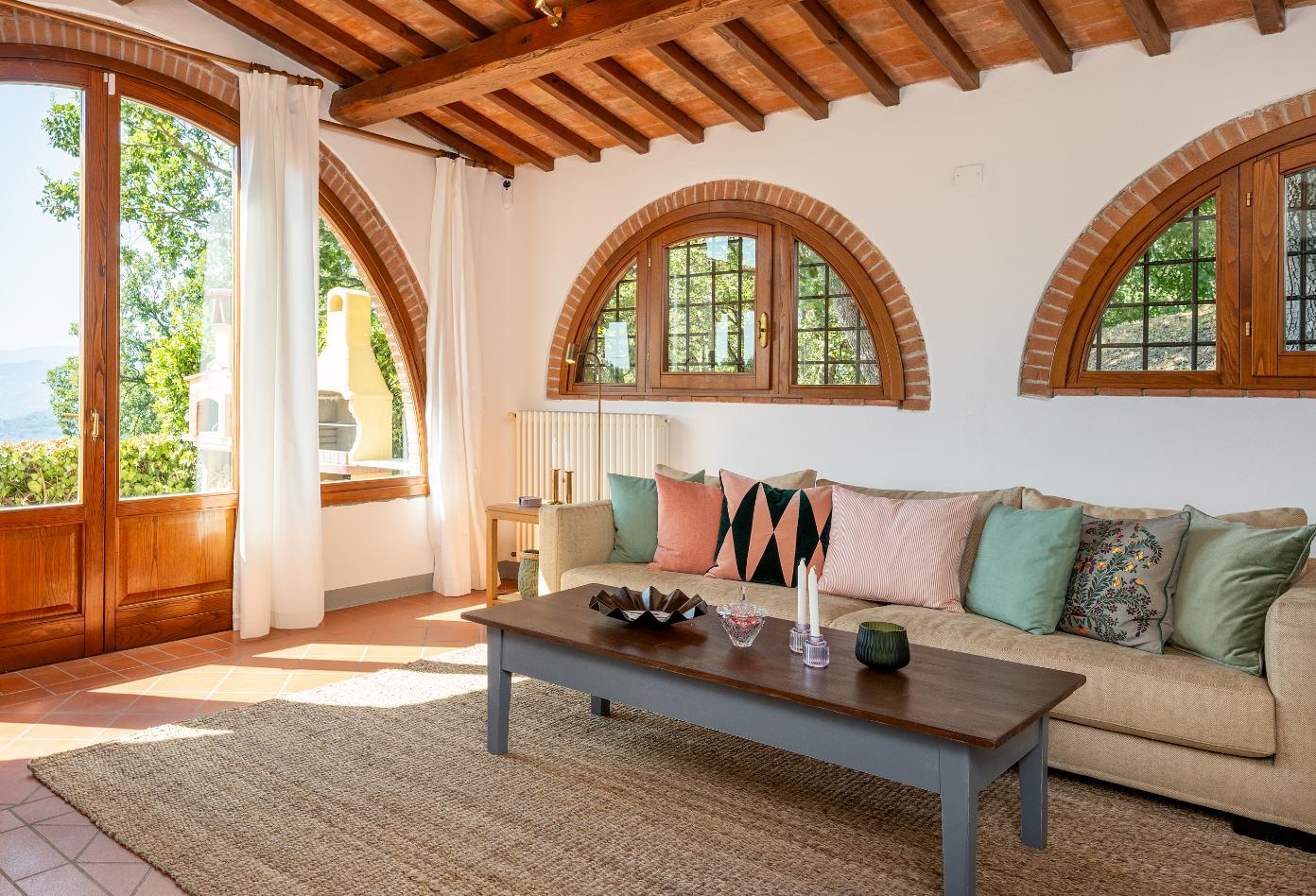 Oplev klassisk toscansk charme i denne villa med smukt pudsede facader og traditionelle detaljer, og nyd roen i de bakkede landskaber tæt på Montecatini Terme, Firenze og Lucca. Boligen byder på 3 soveværelser med egne badeværelser, åbne opholdsområder og adgang til en skøn have. Fra pergolaens skygge kan du beundre udsigten eller tage en dukkert i poolen ved siden af olivenlunden. Her får du Toscana, præcis som du drømmer om.