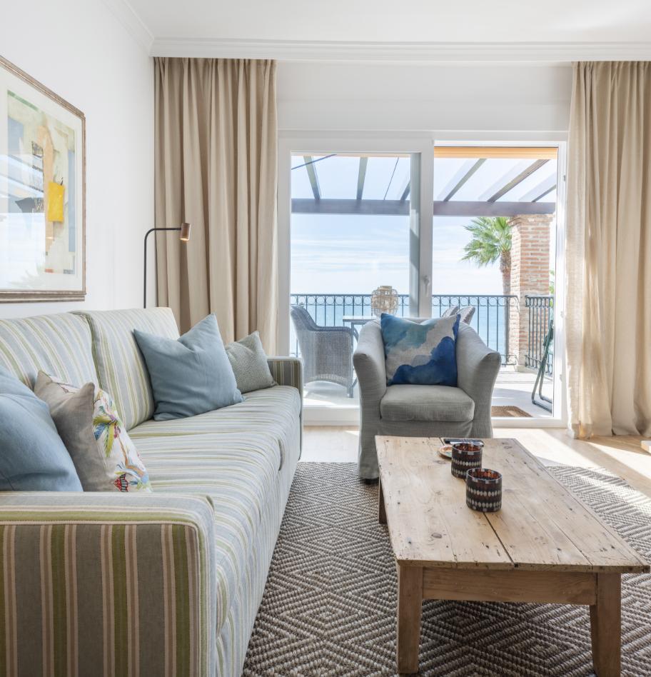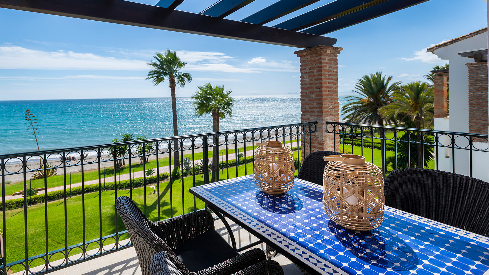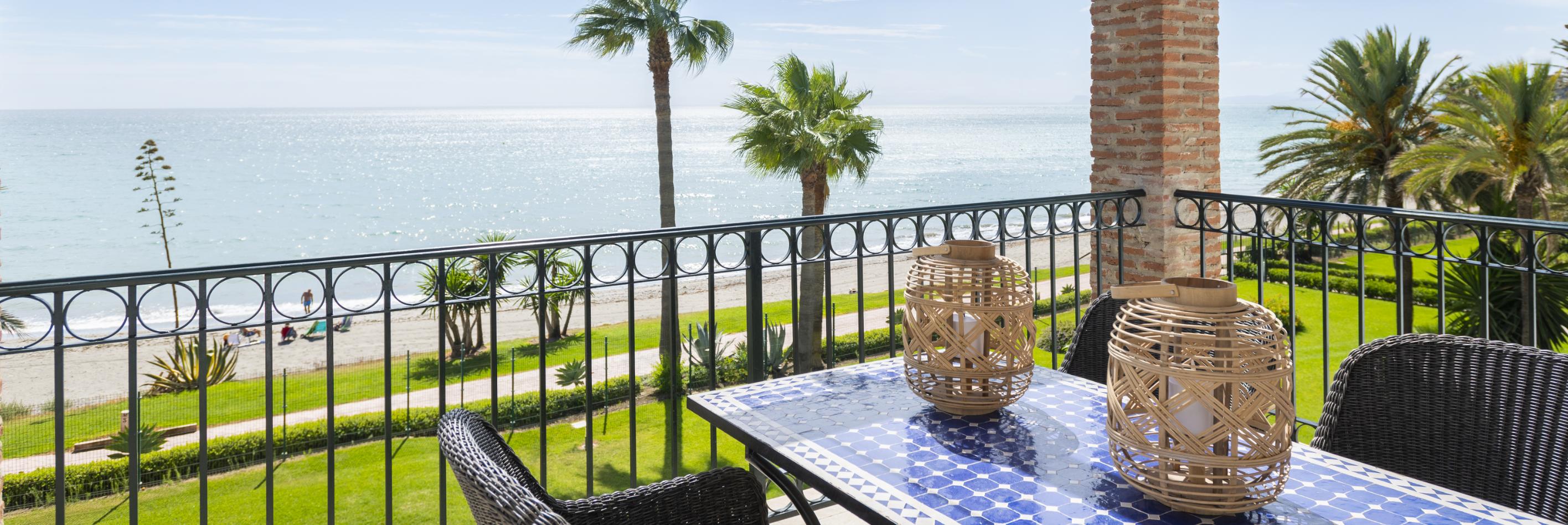 Denne lejlighed i Sydspanien ligger nærmest i vandkanten og byder på en storslået udsigt til stranden, palmerne og havet. Med et velindrettet leverum, terrasse med pergola og adgang til en stor fælles pool i smukke omgivelser er rammerne sat for afslapning og nydelse. Strandcaféer som Sonora Beach og Esteponas hyggelige centrum er inden for rækkevidde, mens Marbella og Puerto Banus’ livlige atmosfære også er tæt på.