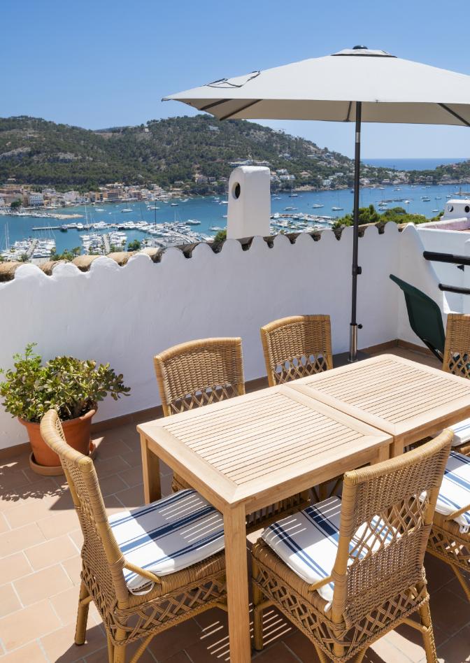 Denne charmerende lejlighed i mallorcinsk stil byder på fantastisk udsigt over lystbådehavnen i Port d’Andratx. Boligen har to terrasser, der giver mulighed for at nyde både sol og skygge, samt to soveværelser og badeværelser – ideelt til skønne ferier. En stor fælles pool og nærheden til havet, restauranter og caféer gør denne bolig til en unik perle for både afslapning og oplevelser.