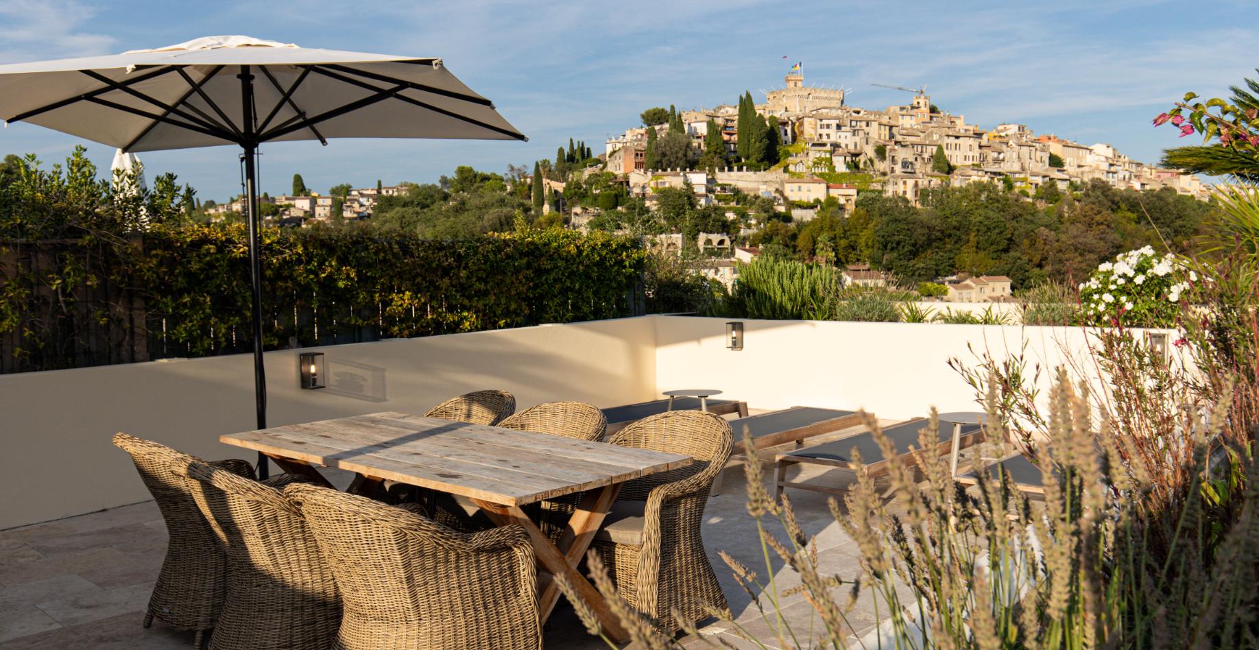 Nyd Middelhavets charme fra denne lejlighed i Cagnes-sur-Mer, hvor en stor, privat tagterrasse med udsigt til havet bliver det naturlige samlingspunkt. De smukke Travertin natursten binder boligens åbne stue, køkken og terrasser sammen i en harmonisk helhed. Med 2 soveværelser, ekstra værelse ved tagterrassen og adgang til en stor fælles pool, tilbyder boligen komfort og luksus. Beliggenheden er tæt på både byens cafeer, restauranter og det azurblå hav.
