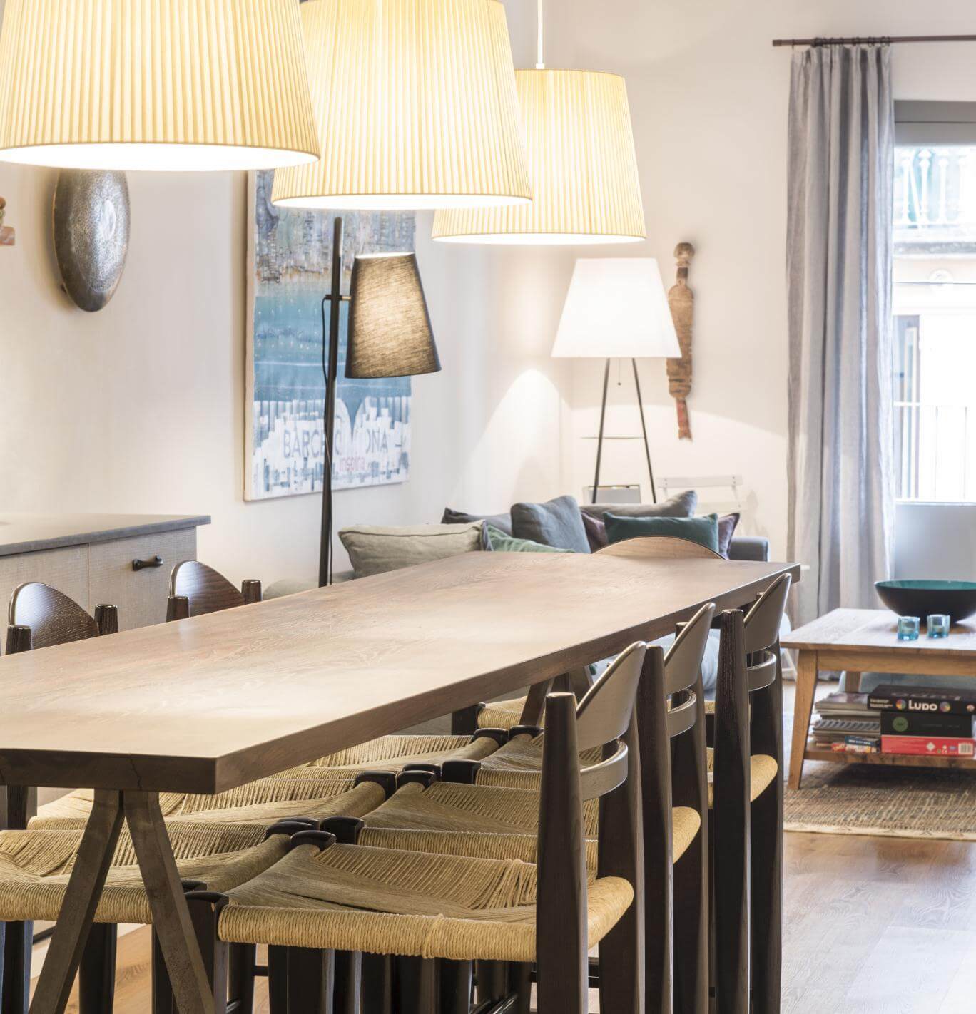 Rummelig og indbydende lejlighed med god beliggenhed tæt på Ramblaen. Der er 3 soveværelser og dejlige opholdsarealer med lys og luft, og lejlighedens to små altaner giver mulighed for at sidde ude. Fra køkkendøren er der adgang til Barcelonas bedste indendørs marked.