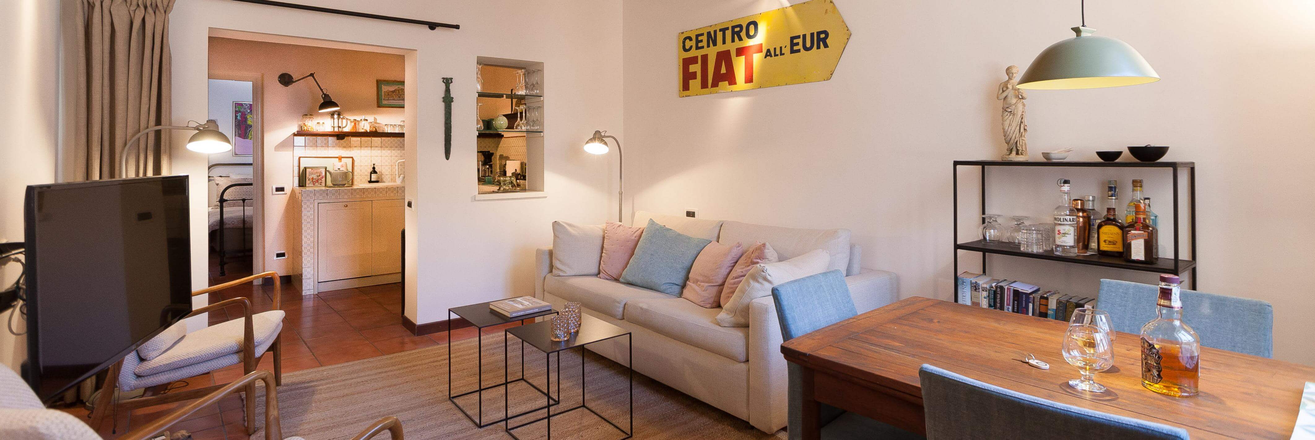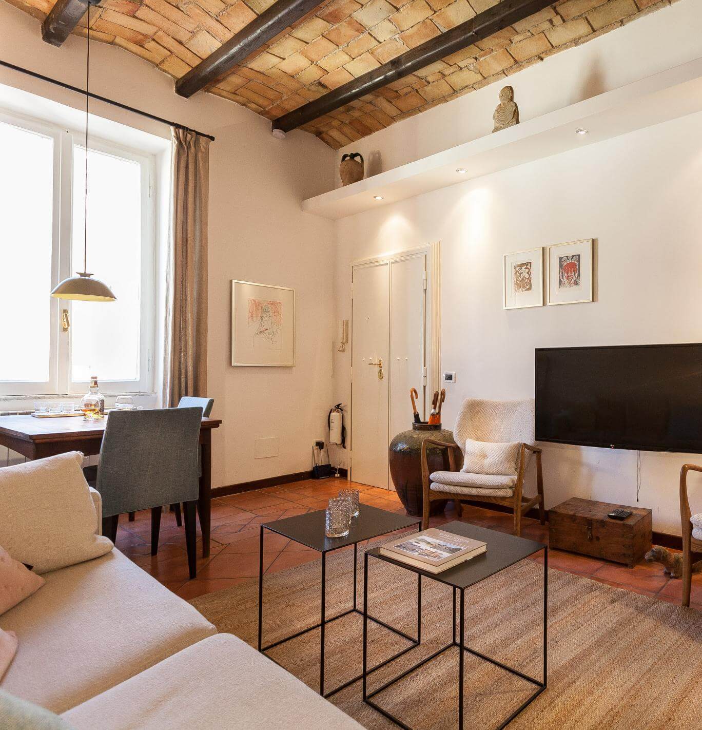 Rigtig fin lejlighed på 3.sal med mange charmerende detaljer. Beliggenheden er suveræn mellem Piazza Navona og floden Tiberen, og lejligheden er en perfekt base for at opleve byens liv og atmosfære på tætteste hold.