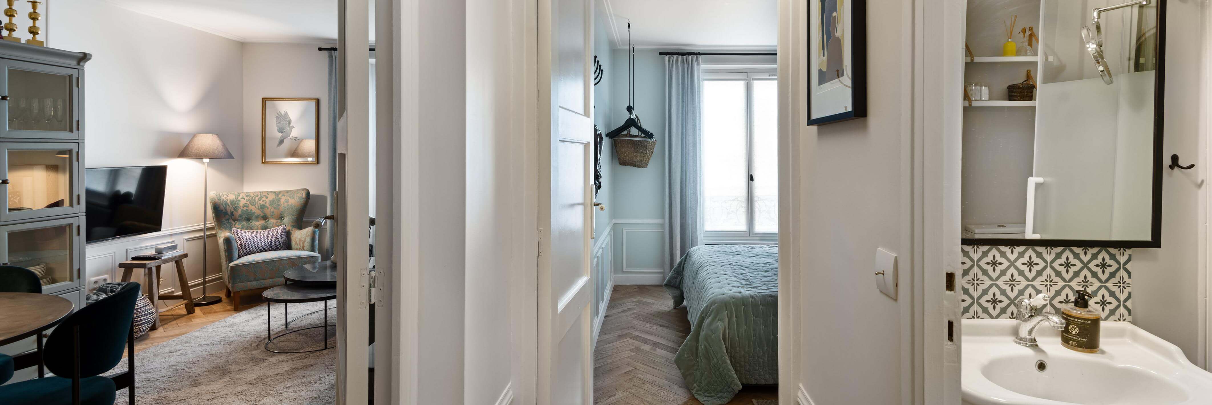 Lækker lejlighed på Rue Oberkampf på kanten af Marais kvarteret. Lejligheden har høje, flotte paneler og det smukkeste sildebensparketgulv, som er med til at give lejligheden et autentisk og herskabeligt udtryk. Det fås ikke meget bedre.