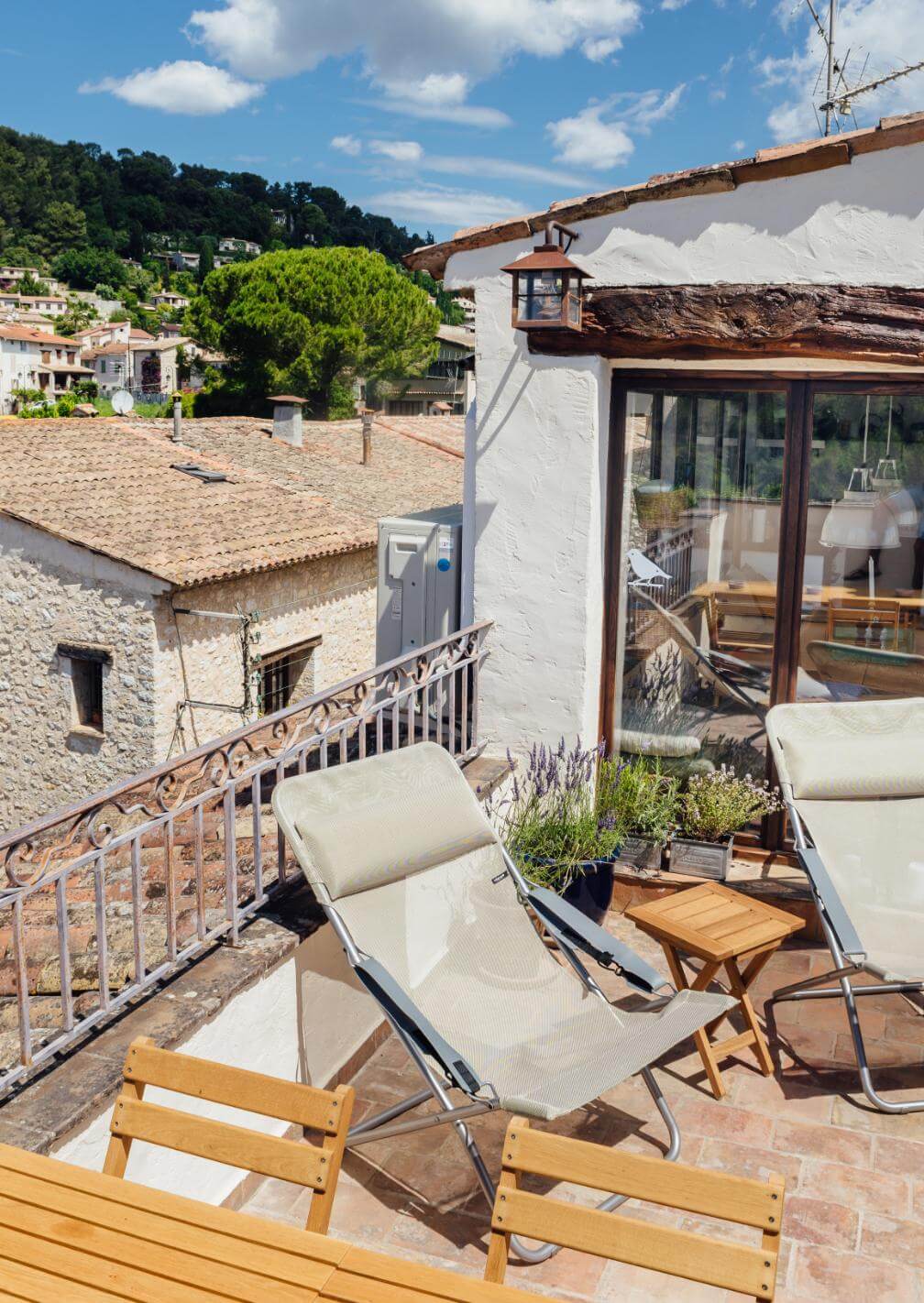 Meget fint byhus i den historiske og maleriske bjergby La Colle-sur-Loup lidt op i baglandet ca. 15 km fra Nice. Huset har en særlig stemning og mange af de skønne detaljer er bevaret. Øverst oppe er køkkenet med en rigtig god og lys spiseplads, og her er udgang til en tagterrasse, hvorfra man kan se ud over byens tage og nyde det smukke landskab.