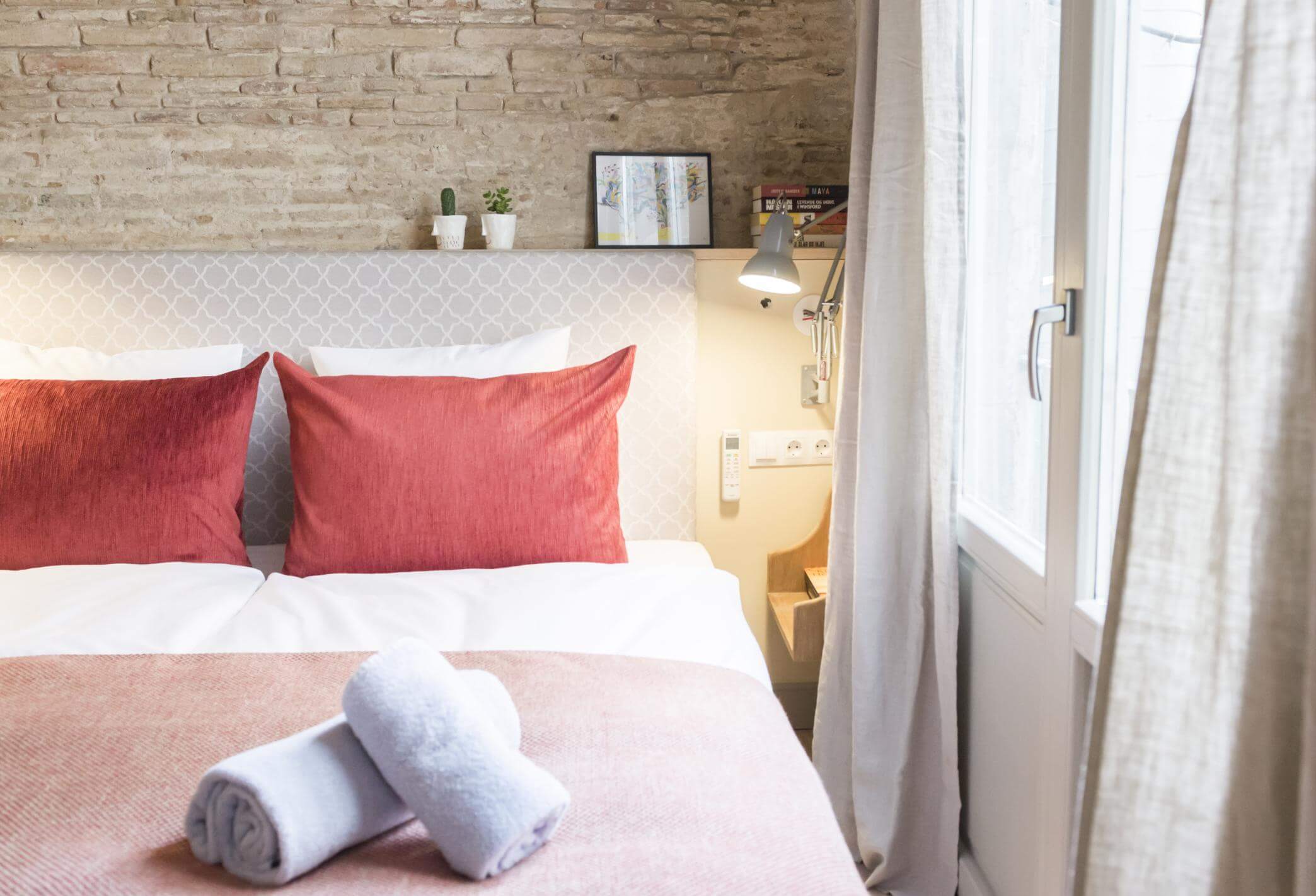 Super hyggelig lejlighed i den gamle del af byen tæt ved havnen og stranden, hvor tapasrestauranter, gallerier og små forretninger liger side om side i de brostensbelagte gader. Lejligheden har mange fine detaljer og højt til loftet, og som noget særligt er der i bygningen en fælles tagterrasse til fri afbenyttelse.
