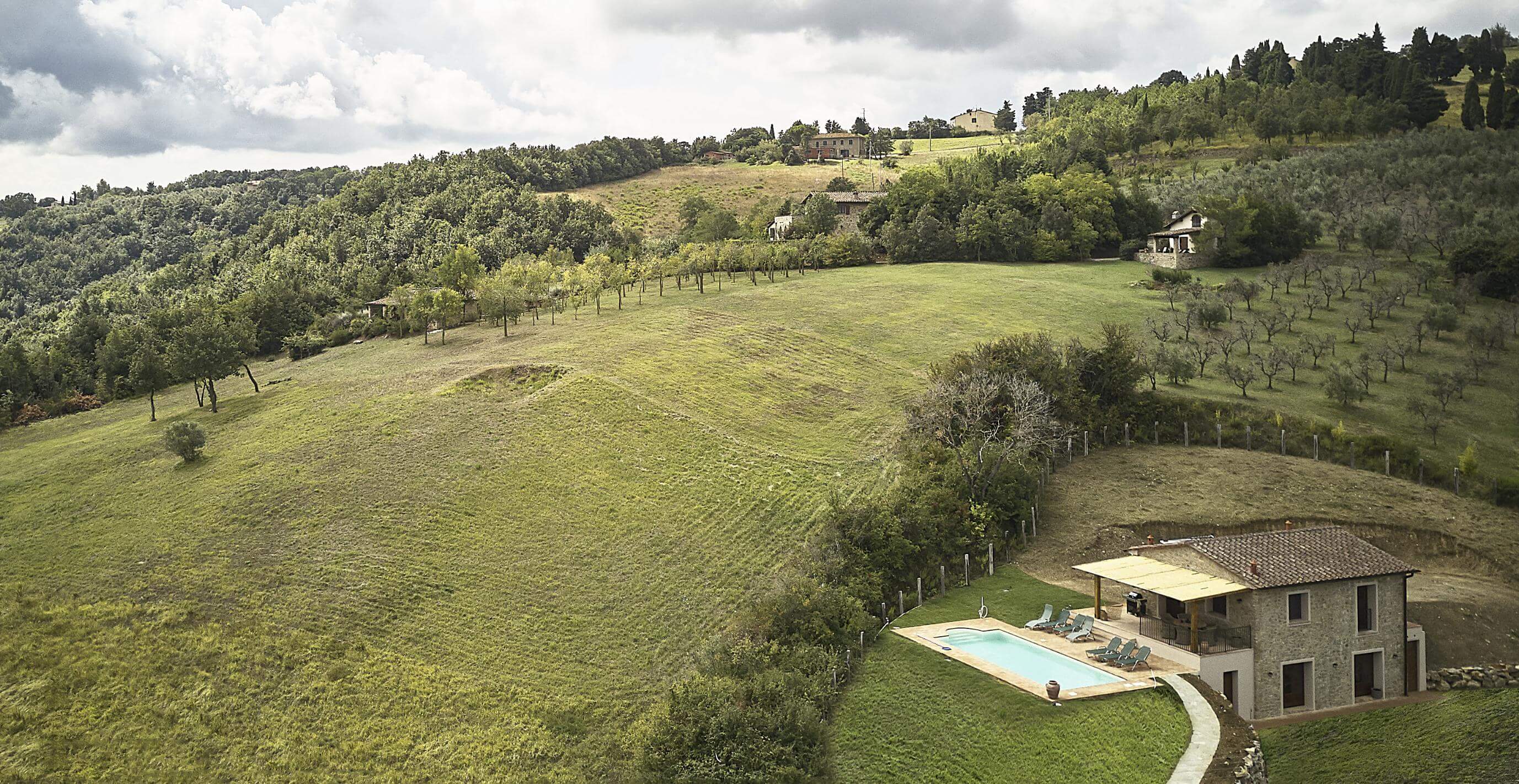 I det bakkede landskab ved Chianni ligger denne charmerende villa med klassiske toscanske materialer og en privat pool. Fra terrassen under pergolaen nydes udsigten over det vidtstrakte landskab, mens aftenerne kan tilbringes i de nærliggende restauranter. Huset kombinerer autentisk stil med moderne komfort som gulvvarme og klimaanlæg.