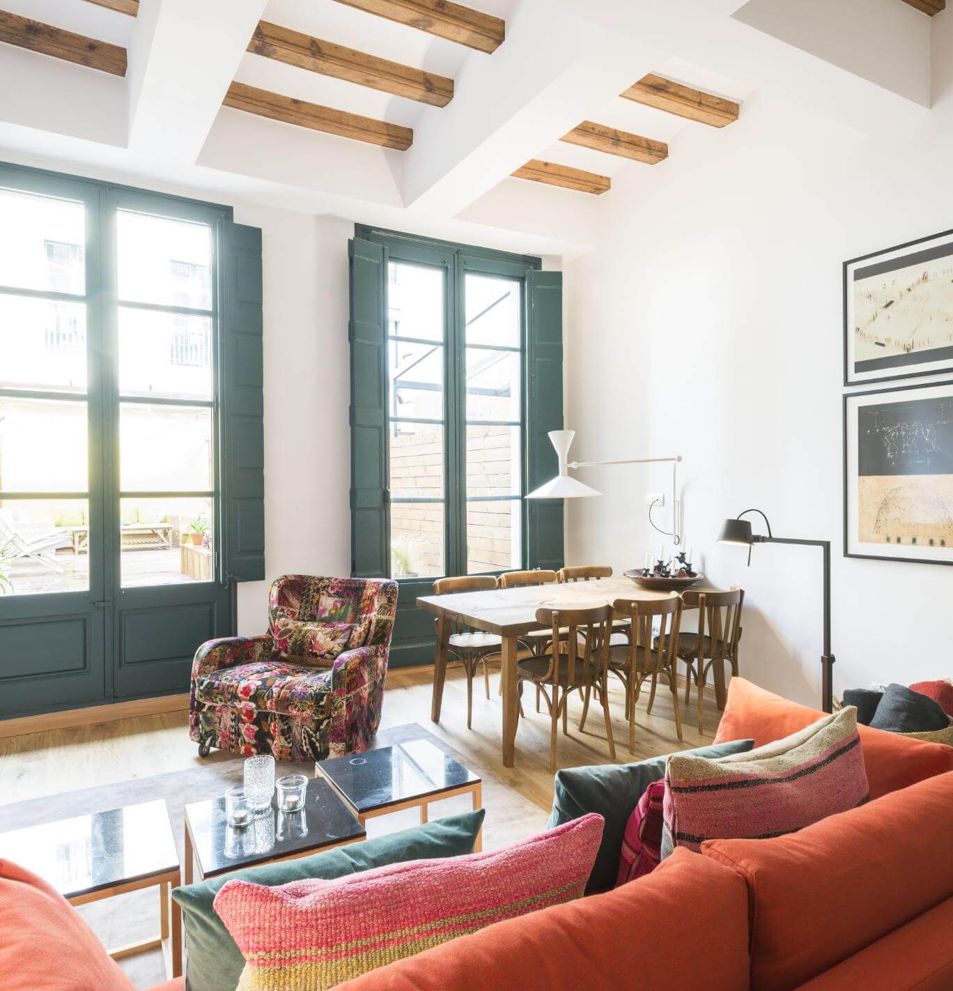 I hjertet af det gotiske kvarter ligger denne stemningsfulde lejlighed med egen gårdhave – en sjælden luksus i Barcelona. Tæt på Ramblaen og byens mange tapasbarer, kultur og strand, giver boligen en perfekt base for at opleve byens pulserende liv og historiske charme.
