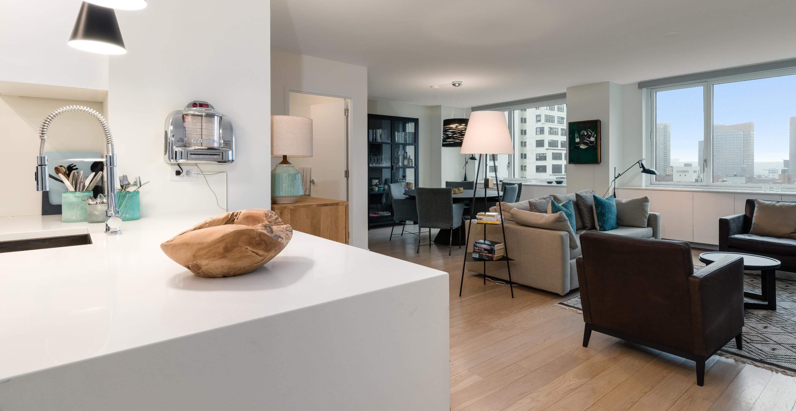 Når dørmanden åbner døren for dig, og conciergen hilser velkommen – måske endda med en pakke, du har fået leveret – er fornemmelsen klar: Du er ikke blot på besøg i New York, du hører hjemme her. Og når du træder op på ejendommens tagterrasse, kan du nyde de betagende udsigter over byens skyline og Hudsonfloden, hvor man næsten kan forestille sig scenen fra “Miracle on the Hudson”, da en pilot nødlandede sit fly på floden og reddede alles liv ombord.