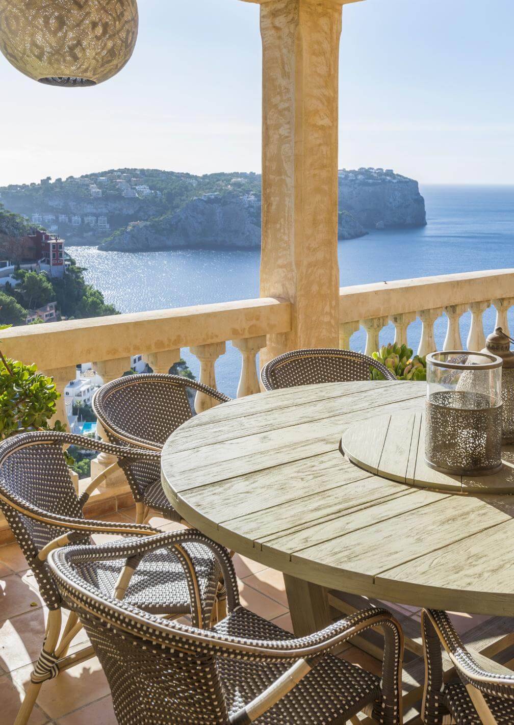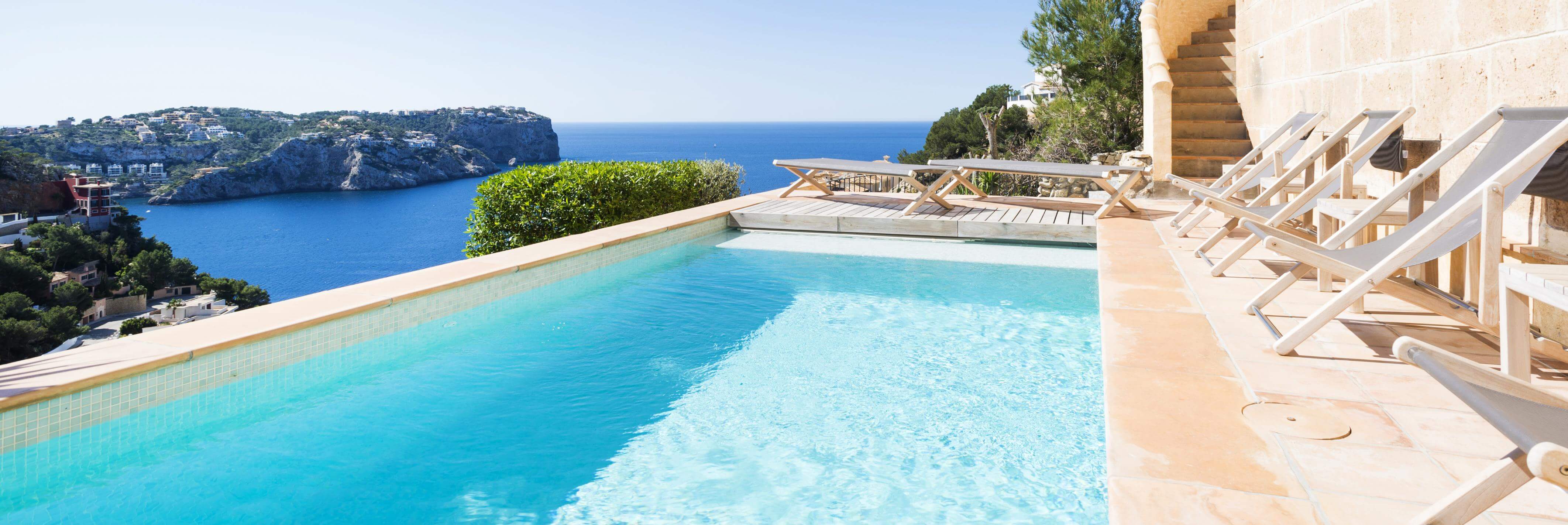 På en klippe med en betagende udsigt over Middelhavet ligger denne imødekommende og rummelige familievilla, som i dag danner rammen om afslappede dage under den mallorcinske sol. Her er hele seks soveværelser, så der er rigelig plads til både familie og venner – samtidig med, at villaens mange kroge og terrasser gør det nemt at finde et stille hjørne til sig selv med en bog eller en kop kaffe.