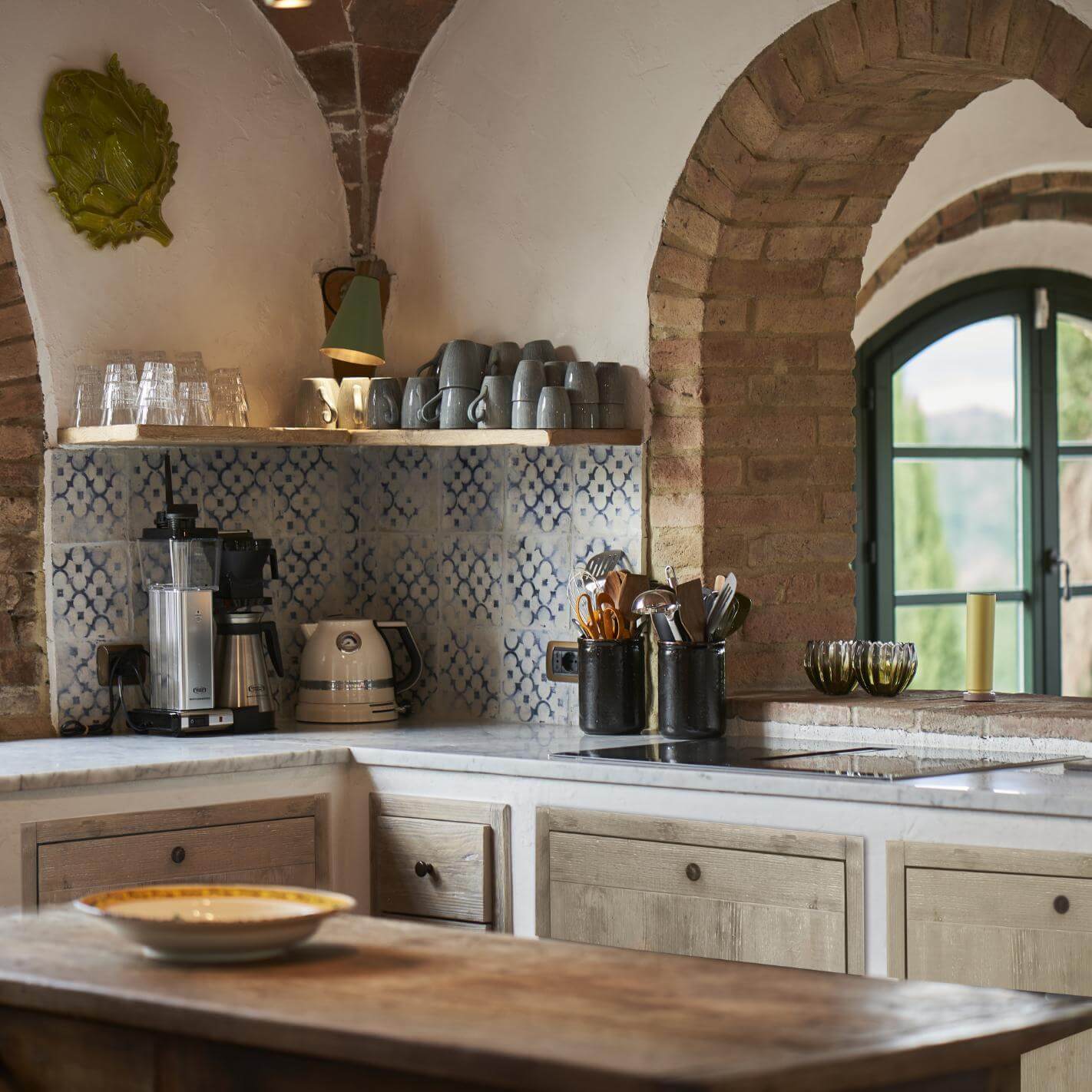 Ejendommen er rig på rustikke og originale detaljer, som vi har bevaret med stor omhu, så man kan gå på opdagelse og hele tiden opdage nye fine elementer. Det nye køkken er udført i rustik stil med materialer, der underbygger følelsen af autenticitet og landlig charme – et sted der inviterer til at tilberede måltider med de lokale råvarer, som Toscana er så kendt for. Boligen byder på smukke soveværelser, et imponerende master bedroom og indbydende badeværelser, alt sammen indrettet med respekt for traditionen og sans for æstetik. Udearealerne er lige så betagende som interiøret – med terrasser, haver og en nyanlagt pool. Poolen er designet med farver og materialer, der falder naturligt ind i landskabet, så den smukt understøtter ejendommens klassiske udtryk og områdets lokale traditioner.