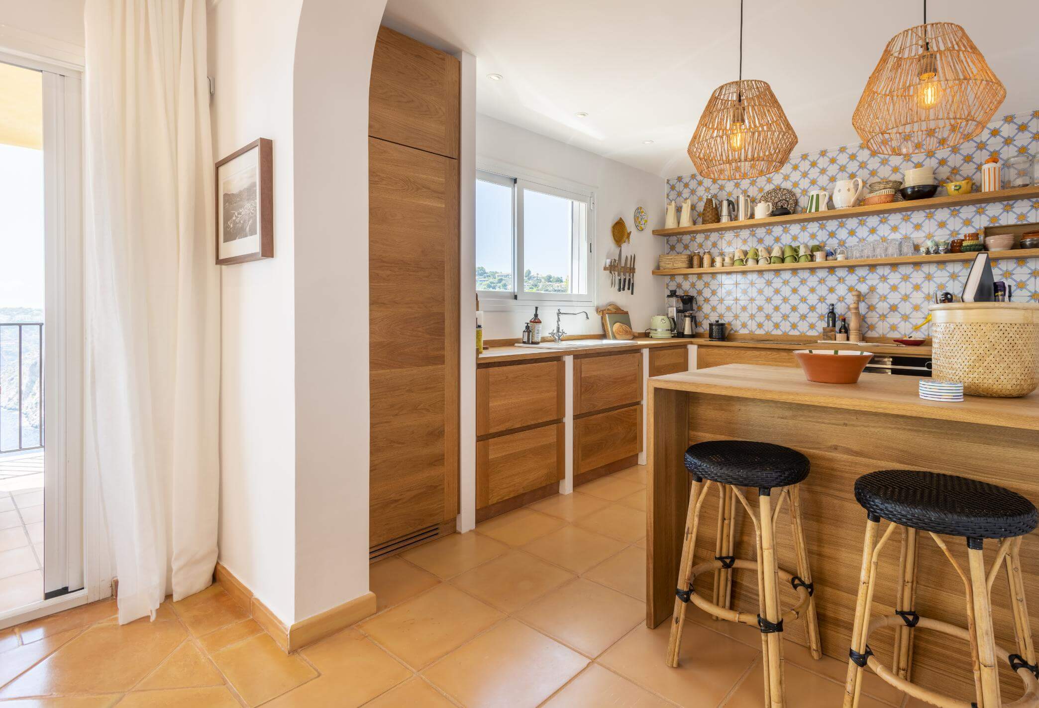 Her har vi erhvervet en smuk villa med betagende udsigt over bugten. Beliggenheden er ideel – tæt på en indbydende beach club, hvor man kan nyde dagen ved vandet, spise godt og lade sig forkæle. Tæt på Port d’Andratx med de mange spise- og indkøbsmuligheder. Ejendommen er rummelig og fordeler sig over flere etager med lækre soveværelser og badeværelser, velindrettede fællesområder og dejlige terrasser, der indbyder til samvær under åben himmel. Boligen er repræsentativ og samtidig hyggelig – og den er blevet nyistandsat ved overtagelsen, så den i dag fremstår lys, indbydende og fuld af komfort.