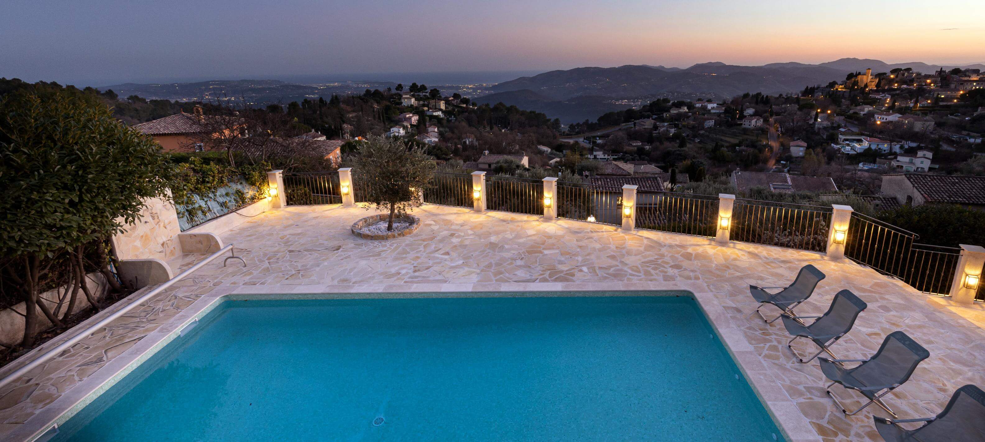 Ved overtagelsen blev ejendommen nænsomt istandsat med respekt for de oprindelige detaljer og traditioner. Vi har tilføjet en ny pool, smukt placeret med et indbydende poolområde, hvor der er god plads til afslapning og samvær. Herfra åbner der sig en fantastisk panoramaudsigt over både byen og Middelhavet, der gør enhver stund ved poolen til noget særligt.