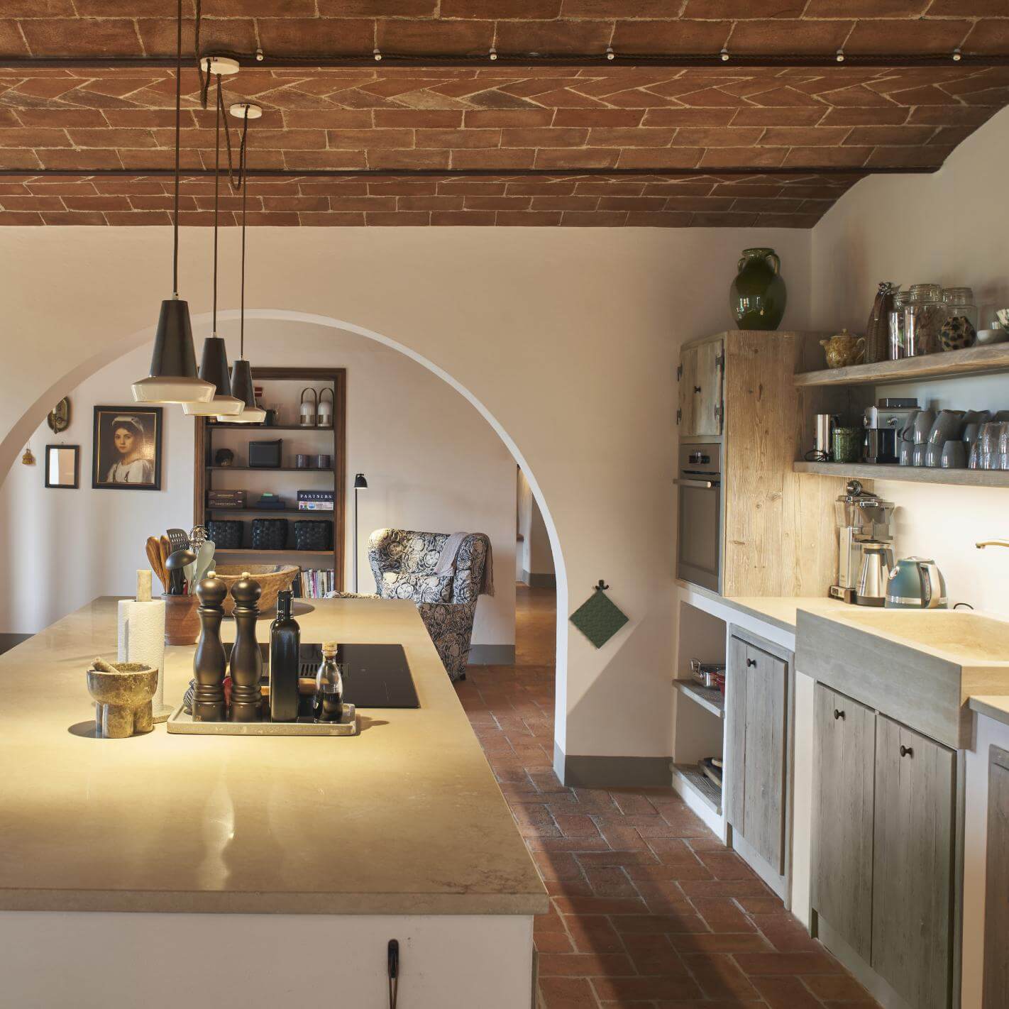 Ejendommen, vi har købt til foreningen, er et klassisk toscansk stenhjem, nænsomt istandsat med respekt for historien og stedets traditioner. Resultatet er et strålende eksempel på de indbydende toscanske dyder: et smukt landkøkken med masser af atmosfære, velvede lofter, og materialer der er tro mod stedet – som de karakteristiske cotto-sten og støvede, varme farver.