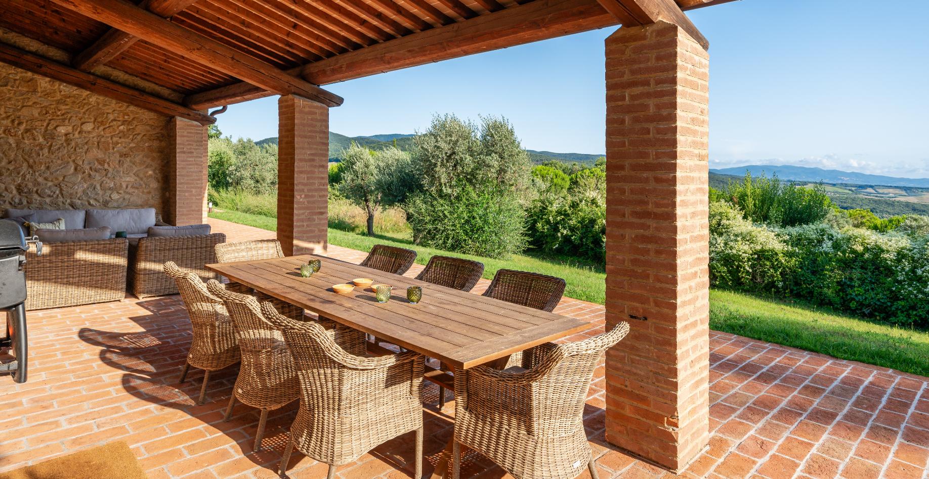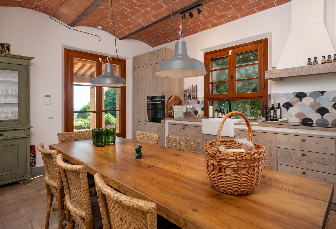 Fra landvillaen kan man på klare dage se helt ud til Middelhavet og øen Elba i horisonten – et sjældent syn, som gør opholdet her til noget helt særligt. At vågne op til dette panorama i de bløde bakker er en oplevelse i sig selv.