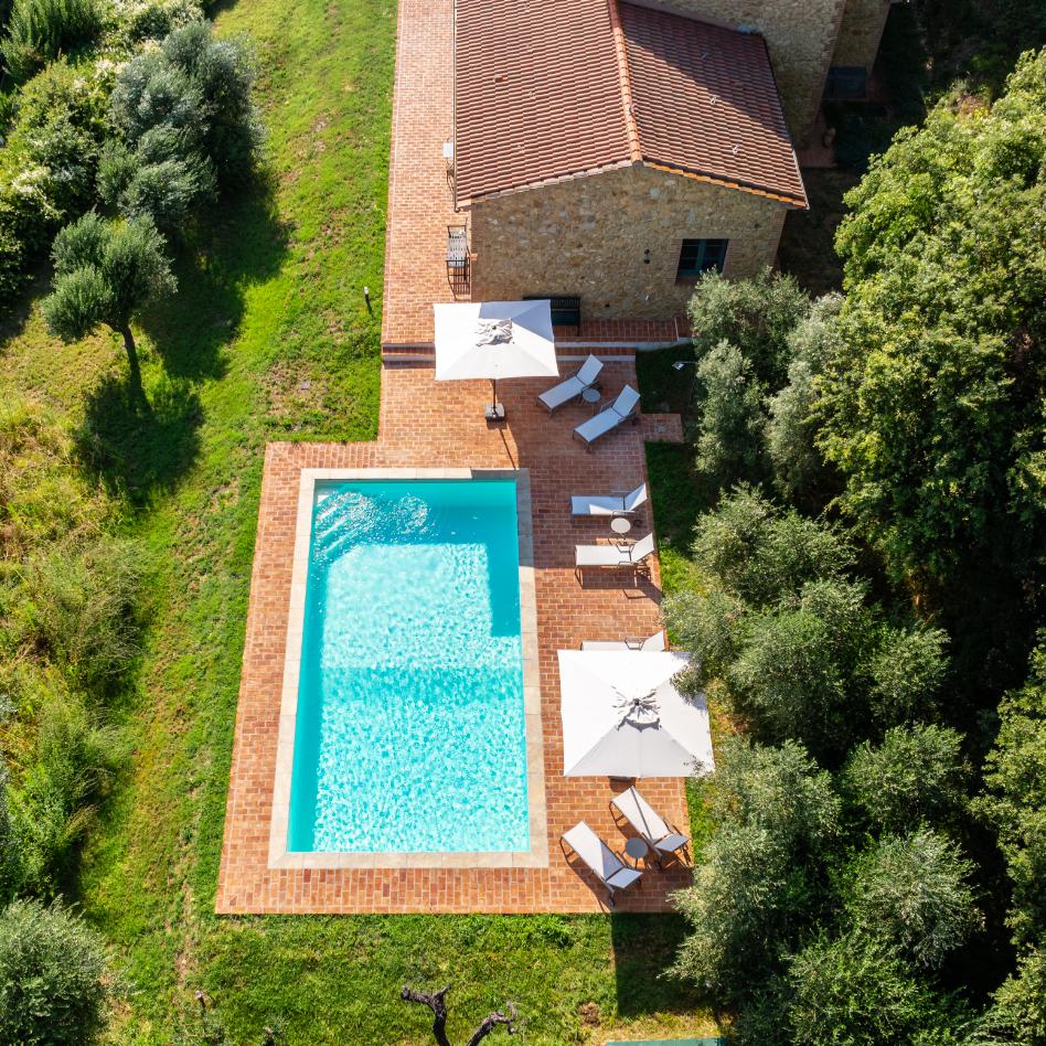 Ejendommen er en nyere opført villa, som vi har færdiggjort til foreningen, hvilket gav os muligheden for at vælge netop de materialer, der kendetegner Toscana: varme farvetoner, klassiske belægninger og en indretning, der smelter naturligt sammen med landskabet. Resultatet er en bolig, der føles autentisk og samtidig funktionel og let at være i. Villaen rummer gode værelser, velindrettede opholdsrum og et dejligt poolområde, der indbyder til afslapning, leg og hyggeligt samvær. Alt er gennemtænkt, så huset kan danne ramme om både store familiesammenkomster og ferier i et mindre selskab.