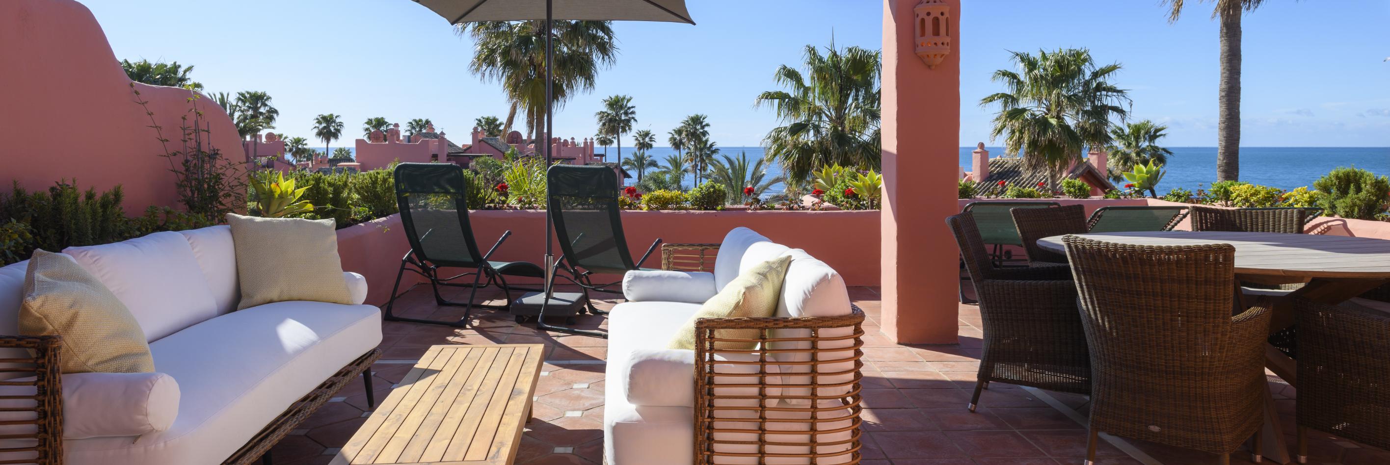 Mellem Marbella og Estepona har vi købt en fantastisk lejlighed i to plan, placeret i et charmerende havekompleks med direkte adgang til stranden, til foreningen. Her finder man alle de faciliteter, som gør ferien ubesværet og fuld af liv: velholdte haver passet af ejerforeningens gartnere, flere pools, fitness og hyggelige fællesarealer. Det er netop denne form for gated community, som er meget eftertragtet i Sydspanien – en blanding af komfort, sikkerhed og æstetik, der gør hverdagen let og behagelig.