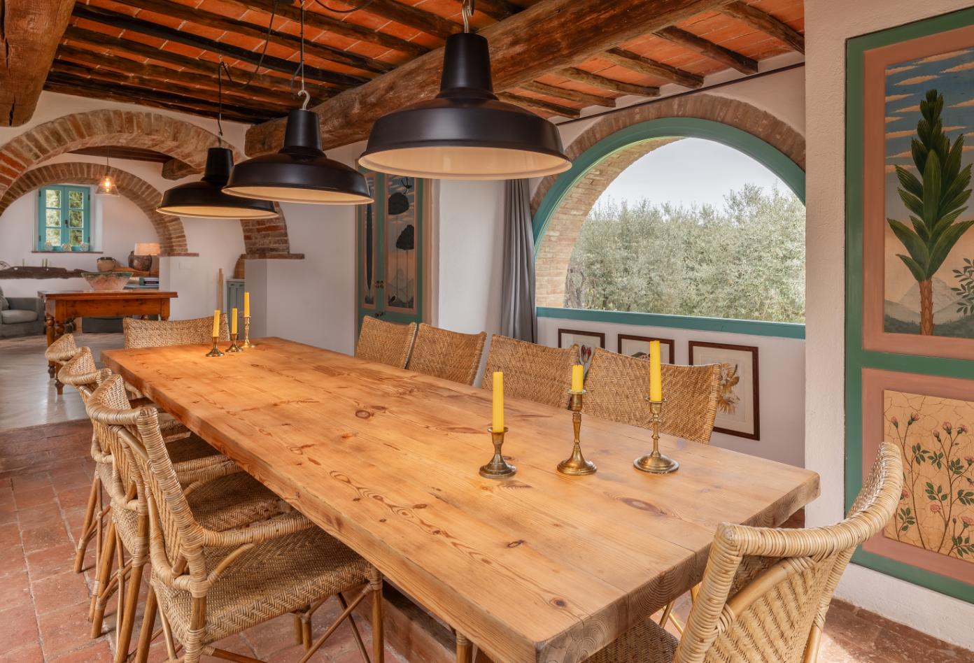 Denne charmerende toscanske ejendom byder på historisk atmosfære med klassiske stengulve, bjælkelofter og murede buer. Med 4 soveværelser med egne badeværelser, to opholdsstuer og en enestående gårdhave med pizzaovn og pool, er der plads til både afslapning og samvær. Beliggende i fredelige omgivelser med egen olivenlund og kun 35 minutter fra Siena, får du her ægte toscansk charme.