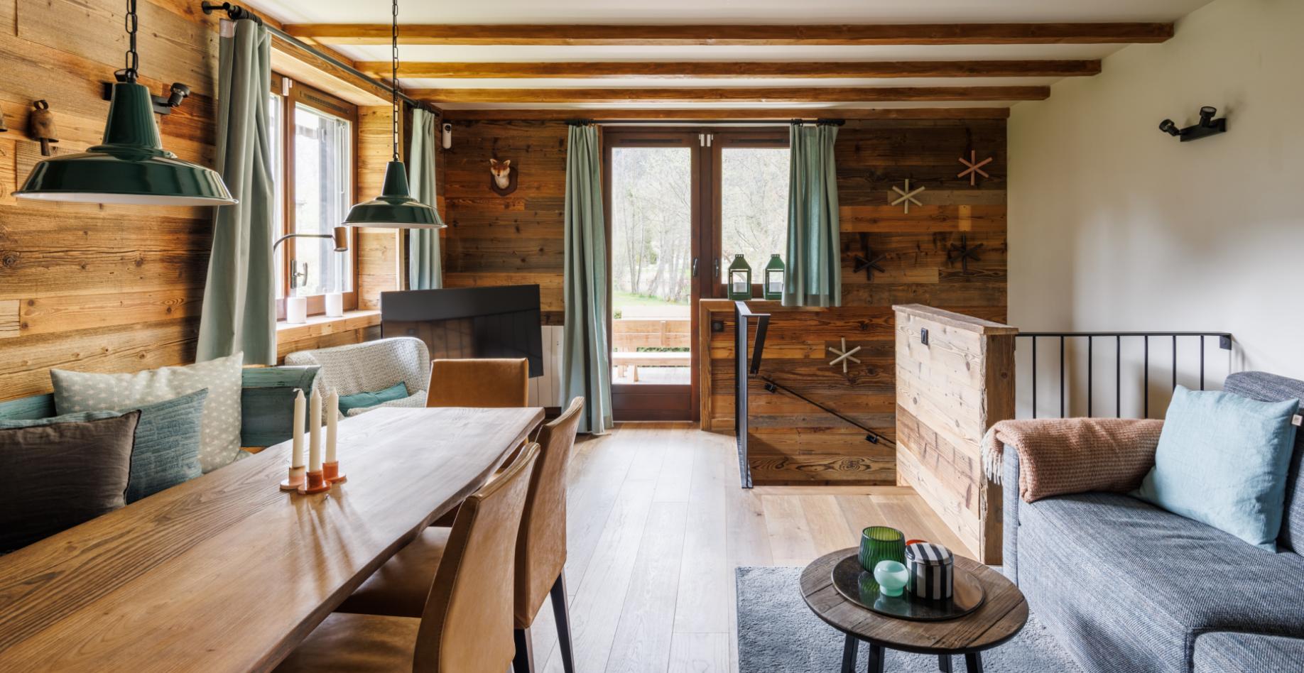 Denne lejlighed i Champraz ved centrum af Chamonix byder på betagende udsigt til bjerge og sø, omgivet af smuk natur. Med 2 plan, 3 soveværelser med egne badeværelser, privat terrasse og have er boligen ideel til både afslapning og aktive ferier. Skirum og egen garage gør den praktisk til skisport, cykling eller vandring, mens Chamonix’ hyggelige centrum byder på spisesteder og barer.