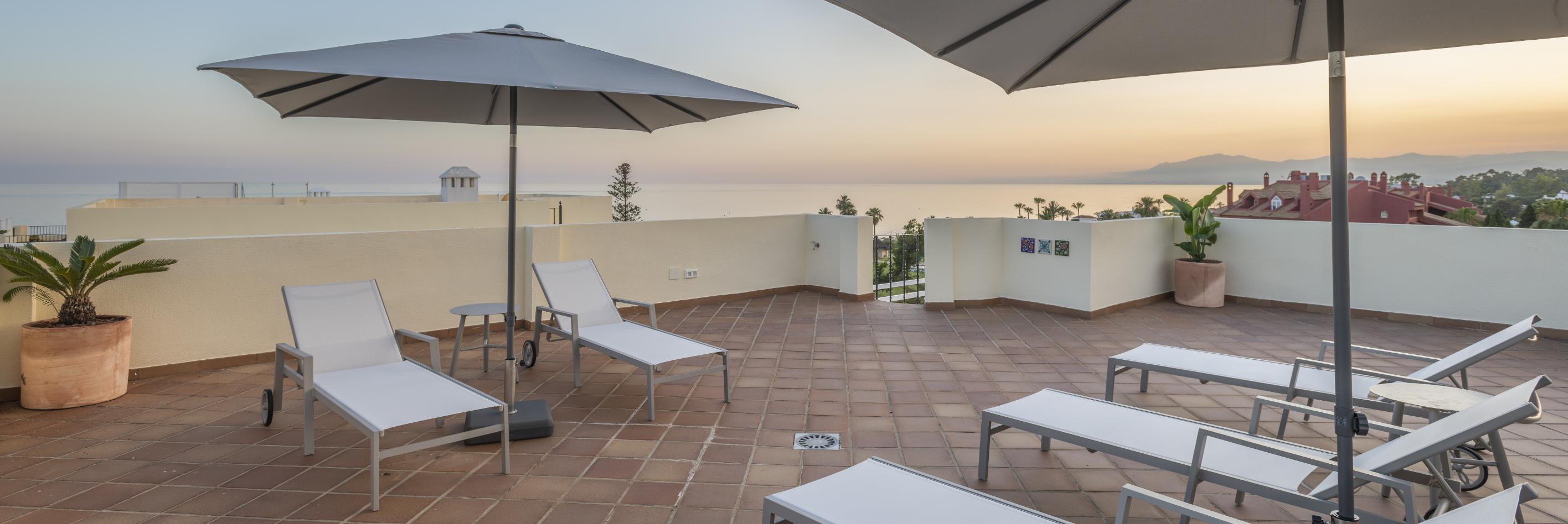 Denne rummelige lejlighed i Elviria, øst for Marbella, byder på fantastiske udearealer med flere terrasser, herunder også en stor tagterrasse. Lejligheden er i 2 plan, og der er 3 soveværelser, 3 badeværelser og opholdsrum. Beliggenheden tæt på stranden, restauranter, indkøbsmuligheder og Santa Maria Golf gør det nemt at nyde alt, området har at tilbyde.