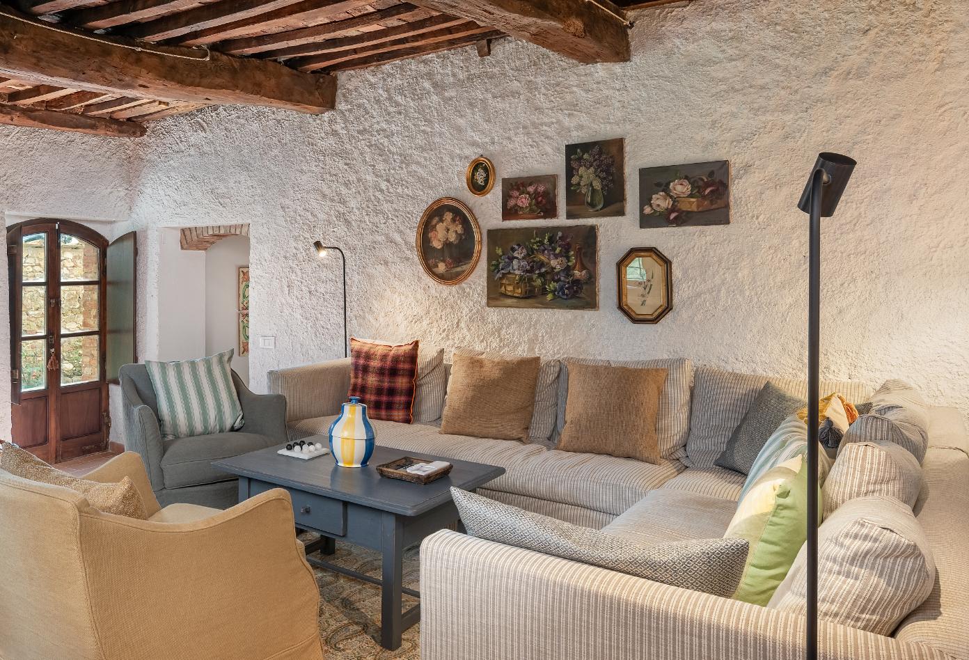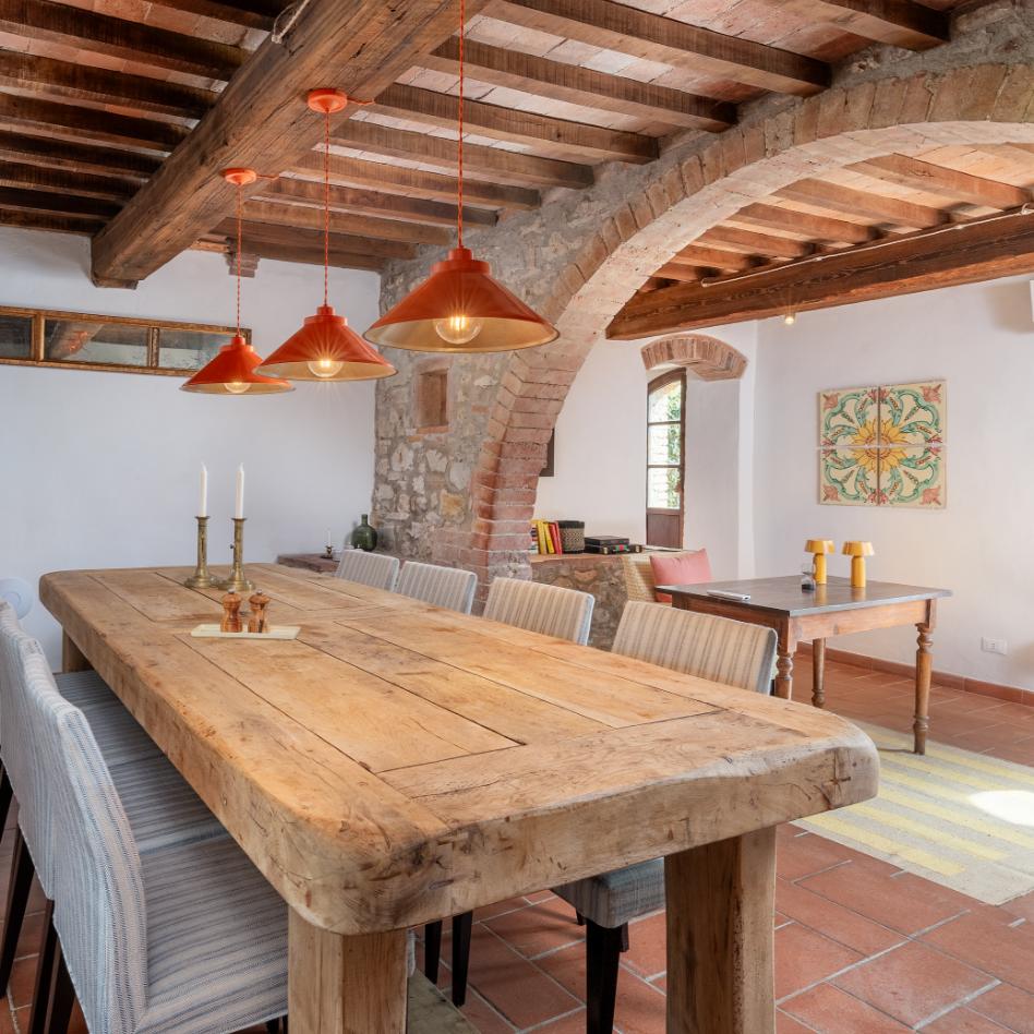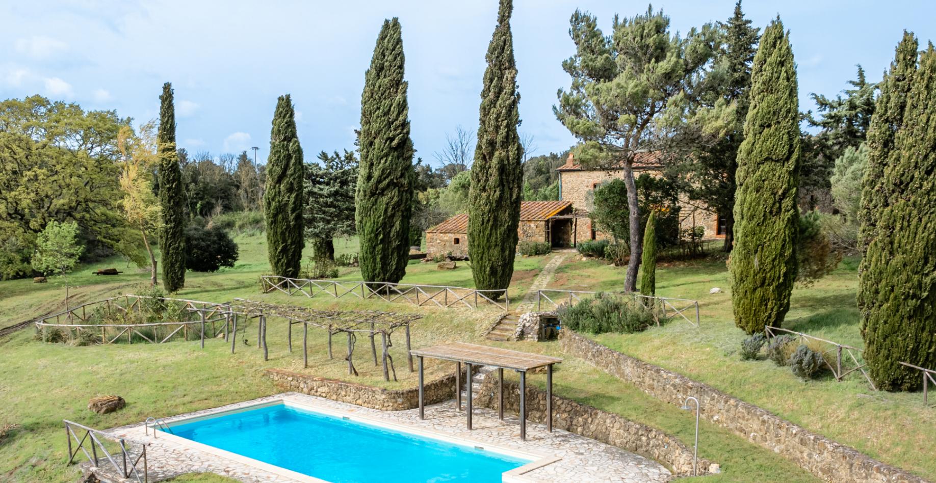 Denne charmerende toscanske ejendom ved Serrazzano byder på autentiske stenfacader, smukke stenvægge og cotto-gulve. Der er 4 soveværelser, 3 badeværelser og hyggelige leveområder, og haven rummer pergola, pool og parklignende beplantning med blåregn og pinjetræer. Beliggenheden er tæt på Volterra, Bolgheris vinmarker og strandene ved Bibbona – et perfekt toscansk tilflugtssted.