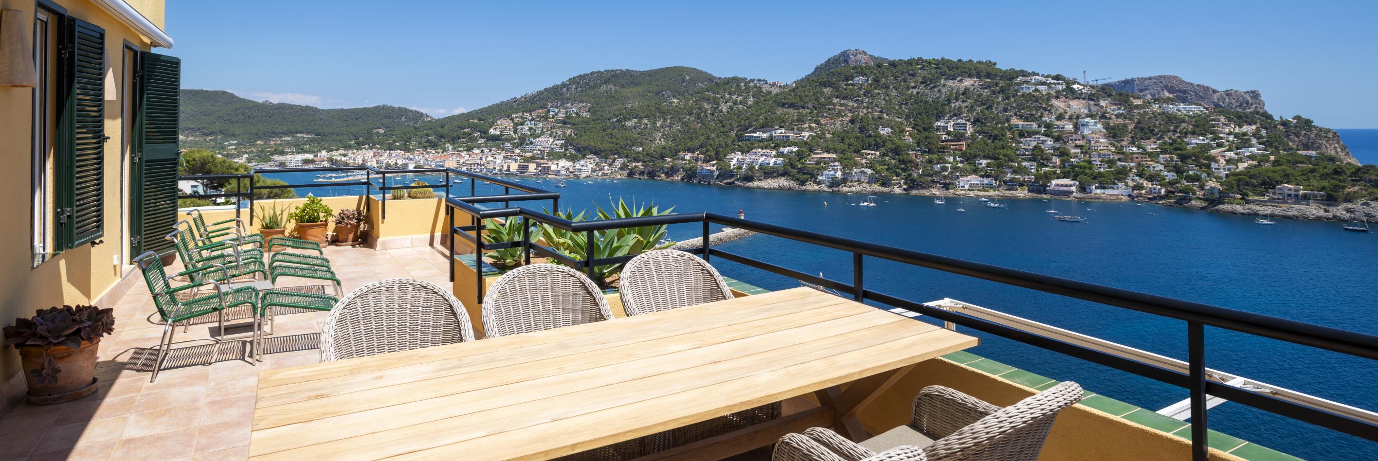 Denne lejlighed ved Port d’Andratx byder på en fantastisk havudsigt, sydvendt terrasse og en lys indretning med 3 soveværelser, 2 badeværelser og åbent køkken-alrum. Beliggende i et velplejet kompleks med pool og hyggelige udearealer er boligen perfekt til ferier. Tæt på stranden, havnepromenadens restauranter og den charmerende gamle bydel – alt inden for gåafstand.