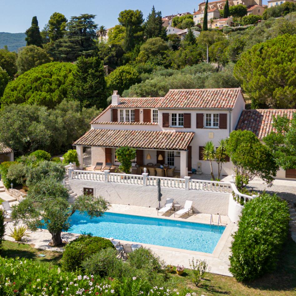 Denne charmerende provencalske stenejendom nær Fayence byder på en spektakulær udsigt over det smukke landskab. Der er 4 soveværelser, 3 badeværelser, rummelig stue og køkken. Haven har en stor pool, pergola og et hyggeligt poolanneks med udekøkken. Beliggenheden er tæt på caféer, golfbanen Terre Blanche og Saint-Cassien søerne.
