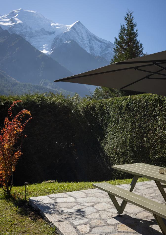 Lejligheden rummer allerede i dag en særlig stemning med smukke, gamle detaljer, som nænsomt er bevaret under istandsættelsen. Den er blevet forvandlet med stor respekt for husets oprindelige udtryk, og resultatet er i dag en indbydende bolig med tre soveværelser, to badeværelser og rummelige opholdsrum. Materialevalget er klassisk og inspireret af bjergene – med træ, sten og tekstiler, der spejler naturen udenfor. Boligen byder på en altan, der løber langs med begge sider af lejligheden, så man kan nyde udsigten fra forskellige vinkler. Dertil kommer et privat havestykke på ca. 200 m², som gør det muligt at opleve noget så sjældent som en grøn oase midt i Chamonix. Med både overdækket parkering og en privat garage er det en bolig, der ikke blot er smuk, men også praktisk og funktionel – perfekt til ferie året rundt.