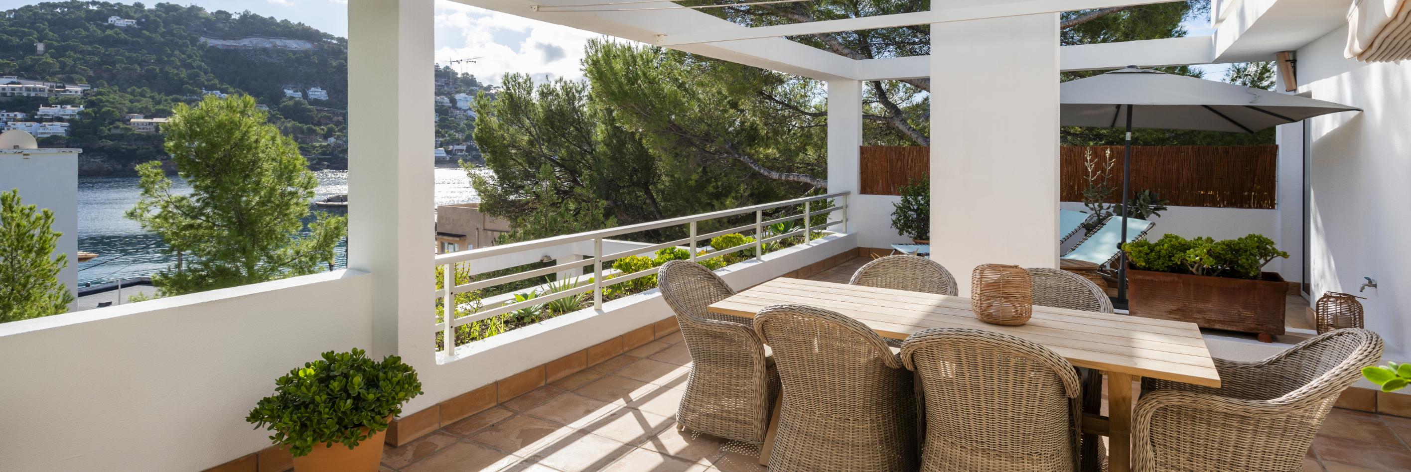 Port d’Andratx er kendt som en af Mallorcas mest stemningsfulde havnebyer – en autentisk fiskerihavn kombineret med moderne livsstil. Byen byder på et væld af restauranter med både lokale og internationale køkkener, små butikker, gallerier og caféer. Her kan man slentre gennem gaderne, nyde en frisk fisk fra det lokale marked eller bare mærke den afslappede og livsnydende atmosfære. Alt i alt er lejligheden en perfekt kombination af beliggenhed, udsigt og komfort. Med stranden få skridt væk, udsigt til havet og havnen, og en indretning inspireret af Middelhavet, er dette en bolig, der vil danne rammen om mange uforglemmelige ferier.