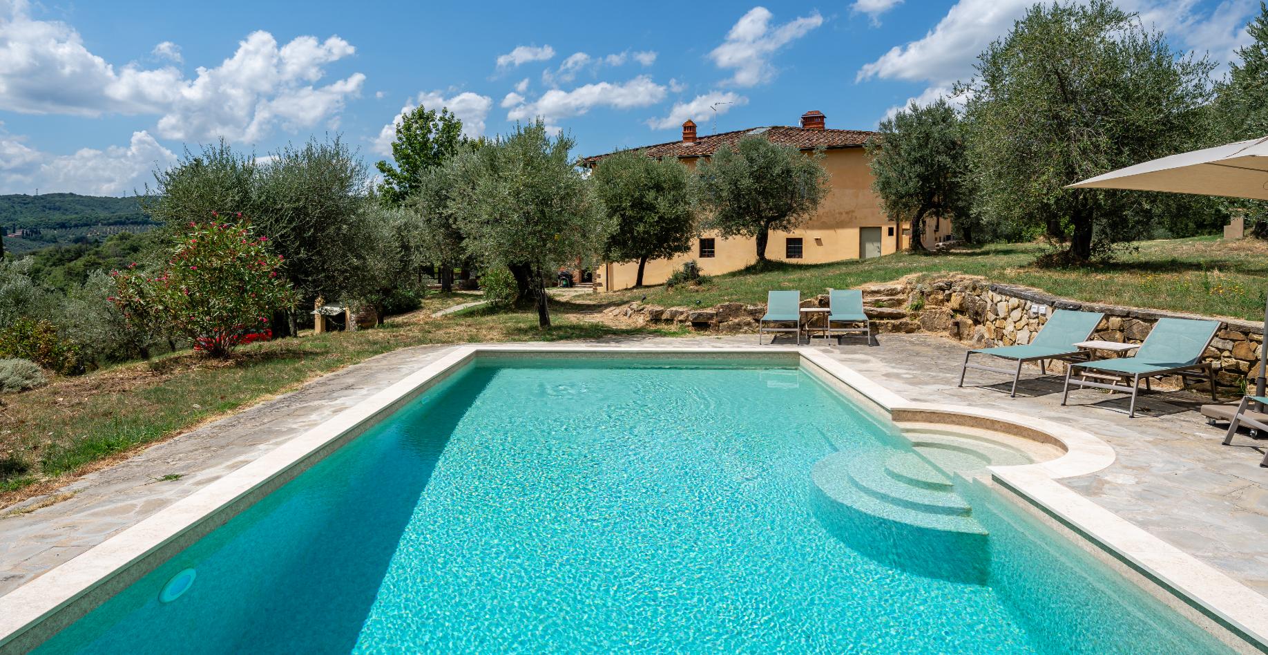 Villaen rummer dejlige soveværelser og badeværelser, alle indrettet med klassiske materialer og en varm, indbydende atmosfære. Inde i huset mødes man af hyggelige opholdsrum, et smukt køkken og detaljer som bjælkelofter, stenmure og cotto-gulve, der skaber den perfekte balance mellem tradition og nutid. De udendørs rammer er lige så betagende. Grunden byder på oliventræer, haverum og masser af plads, mens det indbydende poolområde indfanger solens stråler dagen lang. En tidligere lade er blevet omdannet til et charmerende overdækket udeområde – ideelt til fælles middage eller afslapning i skyggen. Kun 5 km fra villaen ligger den autentiske by Figline Valdarno, som byder på et rigt lokalliv med markeder, caféer, restauranter og butikker. Her kan man købe friske råvarer, nyde det toscanske køkken og mærke den imødekommende atmosfære på byens torv. Området er desuden kendt for sin naturskønhed og beliggenheden tæt på Firenze, som nås på under en time. En særlig detalje er, at selveste musikeren Sting og hans kone i mange år har ejet en ejendom blot en kilometer fra villaen. Af og til åbner de dørene for små arrangementer med mad, musik og vin – en påmindelse om områdets unikke stemning og internationale tiltrækningskraft.