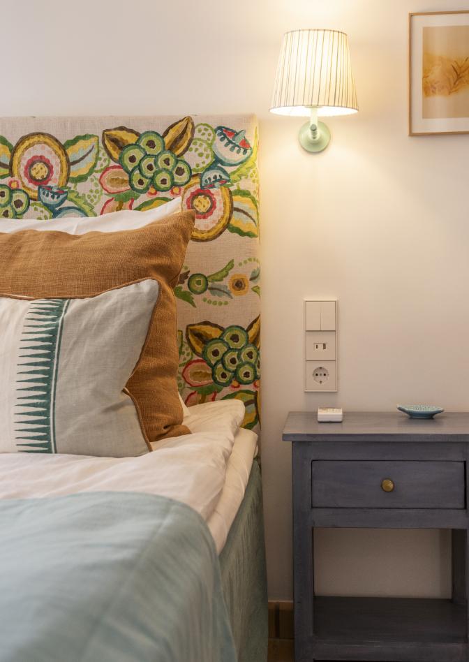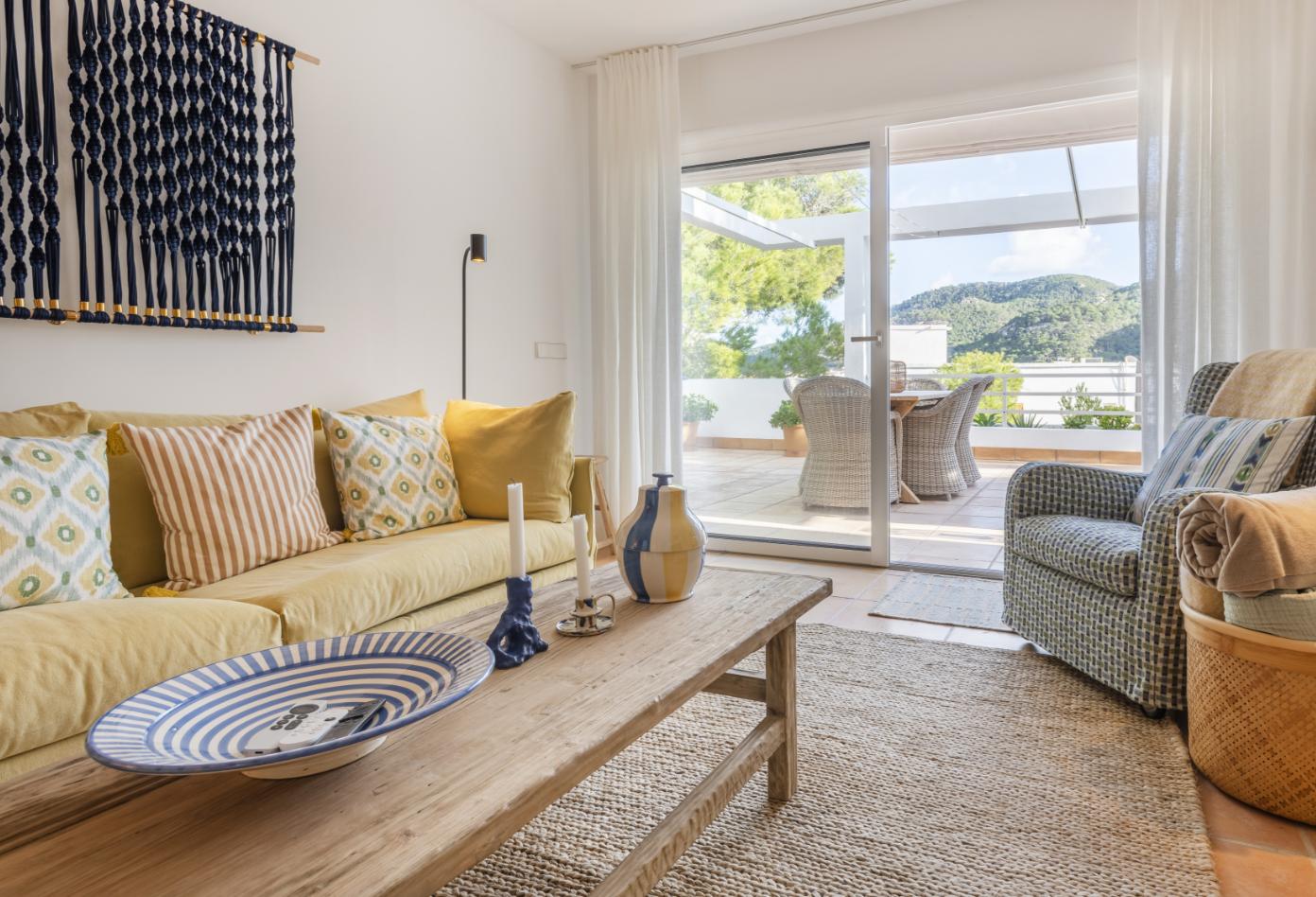 I en klassisk og lys ejendom med kun fire lejligheder ligger denne lejlighed, som straks møder én med en hyggelig og imødekommende atmosfære. Beliggenheden er i særklasse – kun 40 meter fra trappen, der fører direkte til den lille strand i Port d’Andratx. Herfra er der nem adgang til Middelhavets klare vand, og stranden bliver hurtigt et naturligt samlingspunkt for både en frisk morgendukkert og rolige eftermiddage ved havet. Fra lejligheden har man en smuk udsigt til havet og indsejlingen til havnen, hvor man kan følge livet med fiskerbåde, små sejlbåde og luksusyachter, der glider ind og ud af bugten. Om aftenen forvandles udsigten til et levende maleri, når solen går ned bag bjergene og farver himlen i nuancer, som vi også har ladet os inspirere af i indretningen.