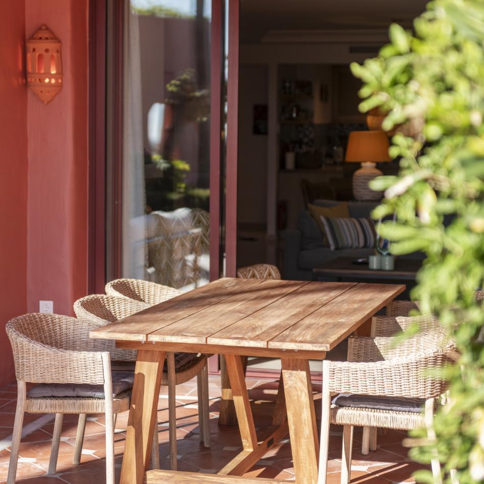 Lejligheden er gennemgribende istandsat og i dag en indbydende ferieoase med tre soveværelser, hyggelig opholdsstue, køkken og to badeværelser. Vi har åbnet op mellem køkken og opholdsstue for at skabe et mere naturligt flow, og farverne i interiøret er nøje valgt for at bringe Middelhavets blå, grønne og sandfarvede toner ind i rummene. Der god plads til både spiseområde og lounge på terrassen der er ca. 45 m2. Her kan man nyde lange måltider under åben himmel eller trække sig tilbage med et glas vin, mens havudsigten og brisen skaber den perfekte ramme. Til lejligheden hører desuden en praktisk garage med god opbevaringsplads, hvilket er en sjælden luksus i området.